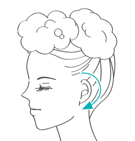 髪の生え際から頭頂部に向かって、前頭部を洗う