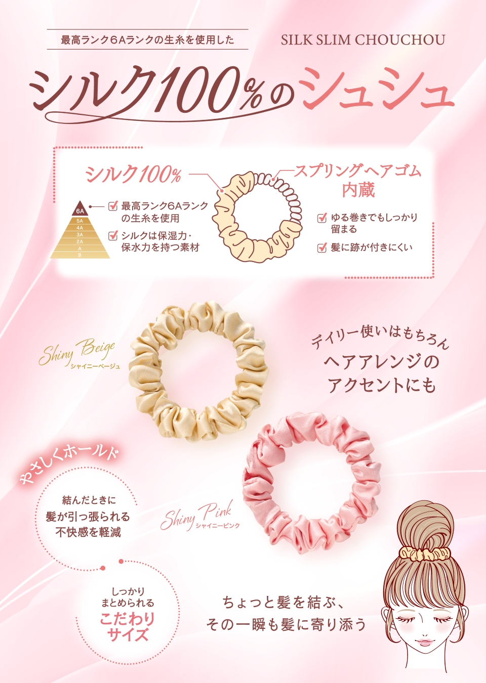 マペペから、スプリングヘアゴムをシルクで包んだシュシュが登場!