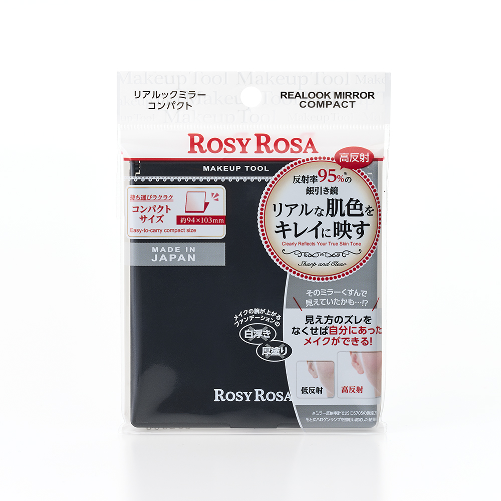 リアルな肌色をキレイに映す、リアルックミラー。持ち運びに便利なコンパクトサイズ。「銀引きミラー」を使用しており、反射率が高いため、見たままの本来の肌色を映すことができます。この反射率が低いと、くすんで見えがちになるため、ファンデーションを必要以上に厚塗りしてしまったり、失敗メイクを引き起こしてしまうかも…。ファンデーションの白浮き・厚塗りおさらば、キレイに差がつく「リアルックミラー」。