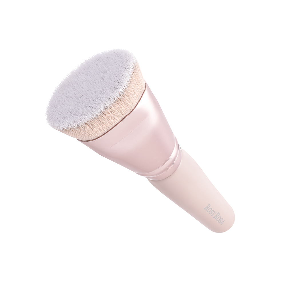 指で額・鼻・頬などにファンデーションをのせてから、ブラシのフラット面を使ってファンデーションを塗り広げてください。その後、フェイスパウダー等で仕上げます。